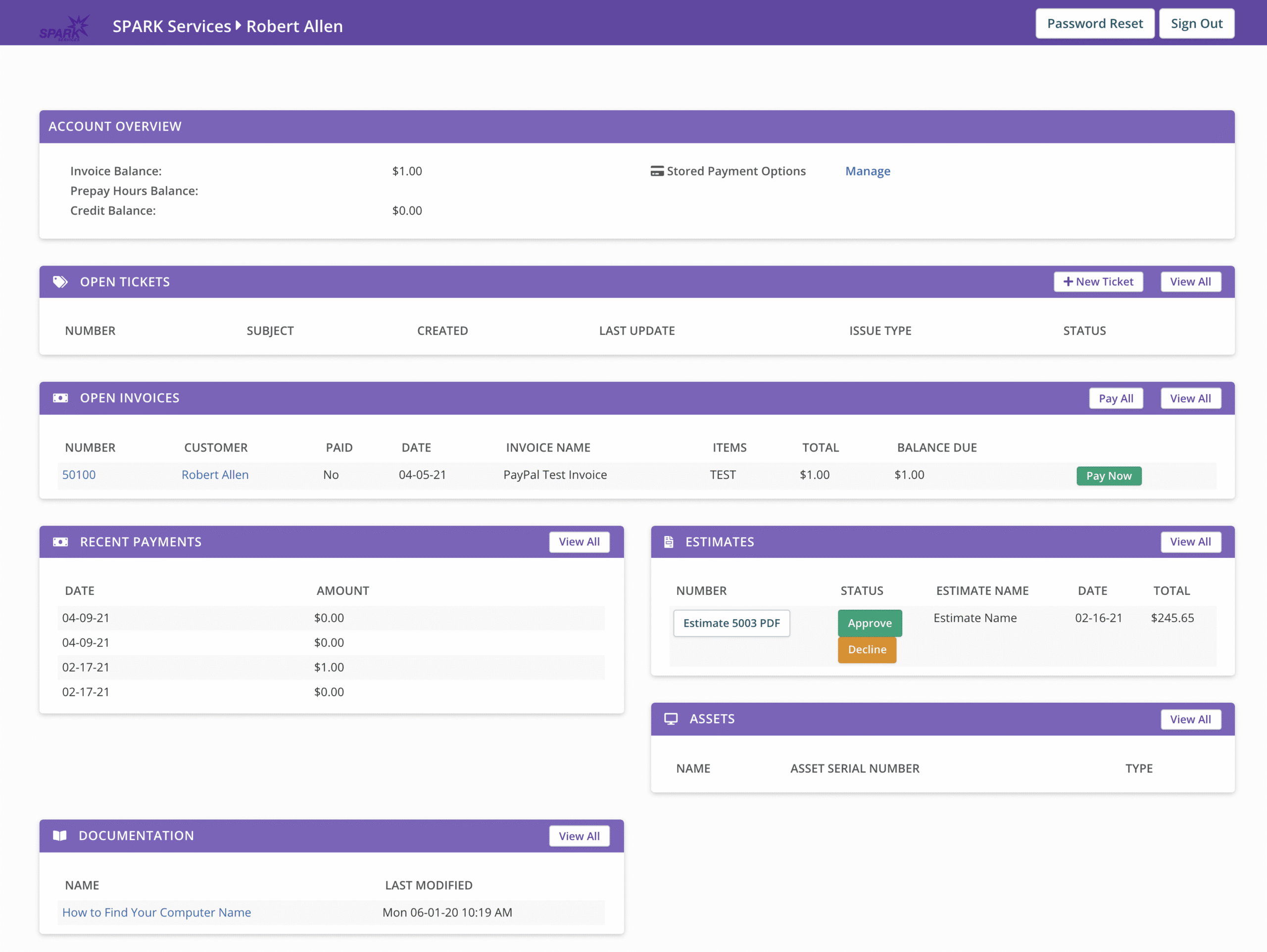 This is the exact same system that many of you have been using already in the form of our support tickets. Most of our customers are set up on auto-pay with a credit card or PayPal account.