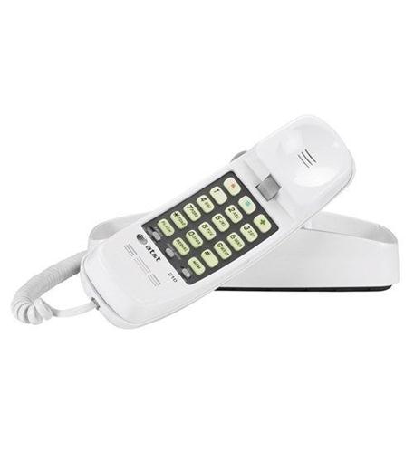 – This white AT&T 210 Corded Trimline Phone with Speed Dial and Memory Buttons is ideal for those who enjoy the convenience of a home phone.