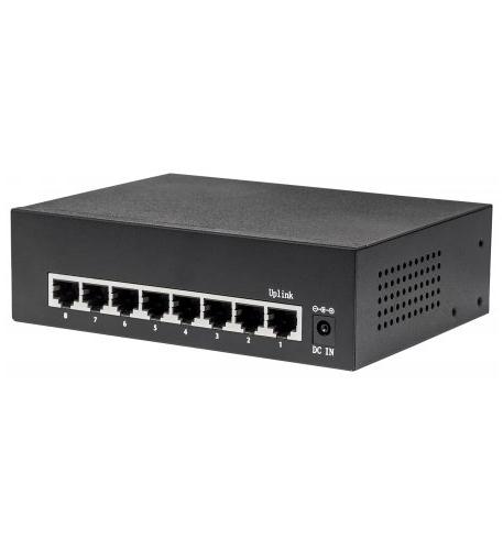 – Provides power and data connection for up to eight PoE network devices