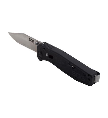 Affordable assisted open knife utilizing patented SOG Assisted Technology to open the knife with authority, a strong glass-reinforced nylon handle, and a 3.5-inch clip point blade