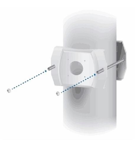 The UniFi Video Camera Pro Large Pole Mount accommodates larger poles up to 160mm wide and mounts one or two Pro Cameras on a single pole